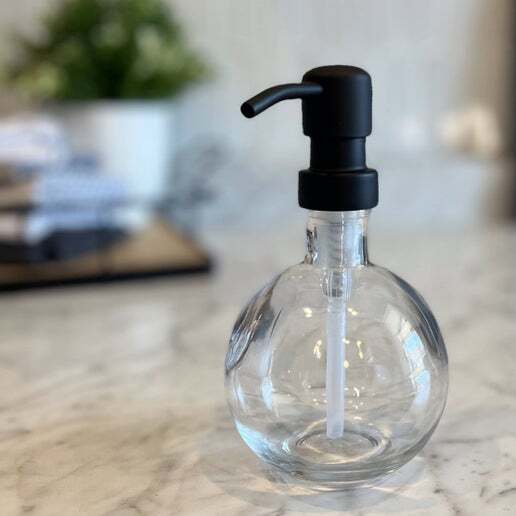 This beautiful uniquely shaped Moon Recycled Glass Soap Dispenser adds a bit of style and sophistication to any kitchen or bath. It is the perfect dispenser for small spaces, while adding an elegant look. Fill with your favorite liquid soap or lotion and set sink side or counter-top for a beautiful touch.