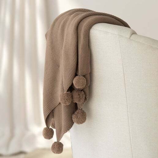 This cotton knit throw is a seed stitch knit - a timeless and classic form of knitting that alternates purl stitch and knits stitch to create a texture that looks like seeds. It is finished with cotton knit pom-poms. This is a lightweight all-season throw. It is yarn-dyed for a lasting rich color. It is machine washable and of heirloom quality, certain to become a favorite go-to throw time and time again - not just beautiful to look at with a fabulous drape but also soft to the touch and lightweight for that perfect cozy vibe.