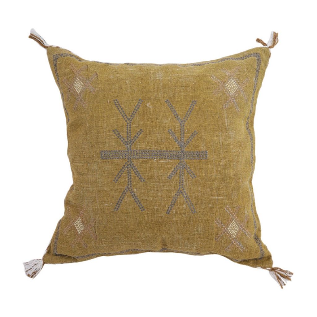 Cactus Silk Inspired Mustard Linen 20" X 20" Pillow Cover
