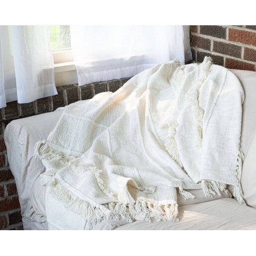 Textiles are touched by hand, giving a quality craftsmanship that shows. Not only are they intricately handloomed, but most of the attachments such as fringe, tassels, braiding, and poms are attached by hand.