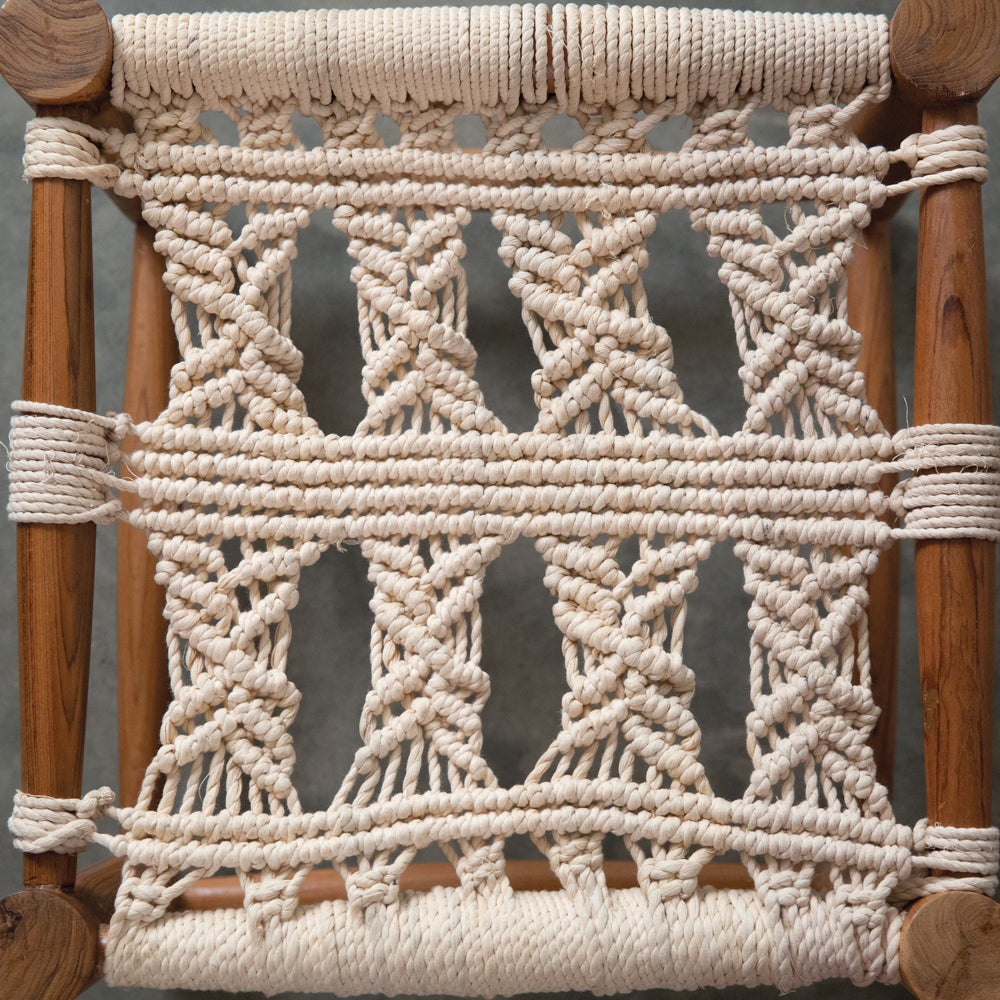 Add a textured look to your room with this homestead macrame footstool. It features wooden legs and a handcrafted macrame seat that is a perfect sized footstool to sit or display small items. This item comes fully assembled.