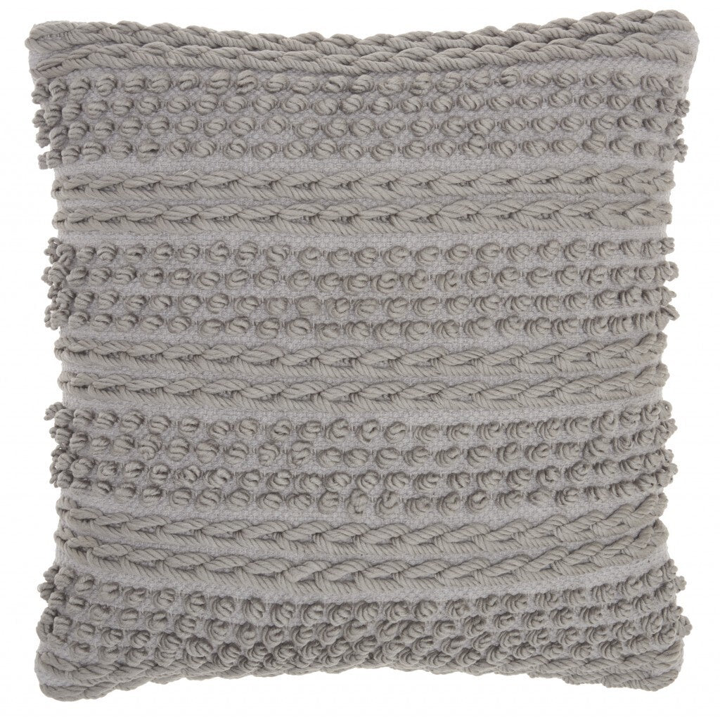 Set a calm and relaxing tone into your living space with this Light Gray Textured Dots and Stripes Throw Pillow that is bound to upgrade the aesthetics of any casual or contemporary setting. Featuring a single hued color palette, this pillow is designed in a classic textural pattern with braided stripes and raised pom-pom to create a fun yet luxurious appeal to the entire piece. Carefully crafted with 60% cotton and 40% polyester, this decorative pillow is not only durable and easy to clean but also feels super soft on the touch. This classy and cozy throw pillow will serve as a great ornate accent for your bed, sofa, or chair while harmonizing with the modern decors of your interior.