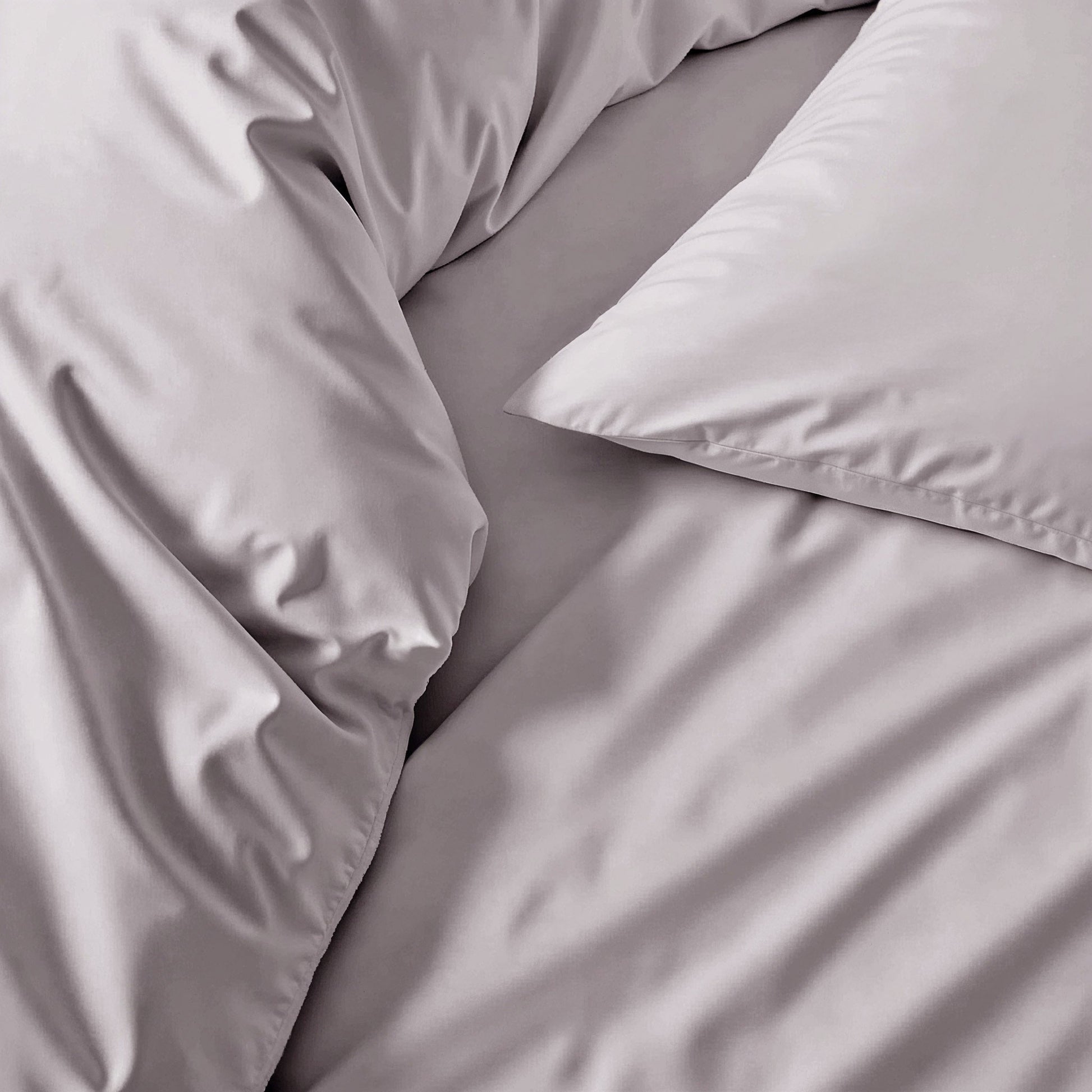 Sateen-woven cotton with a smooth, silky hand and a subtle sheen that catches the light.