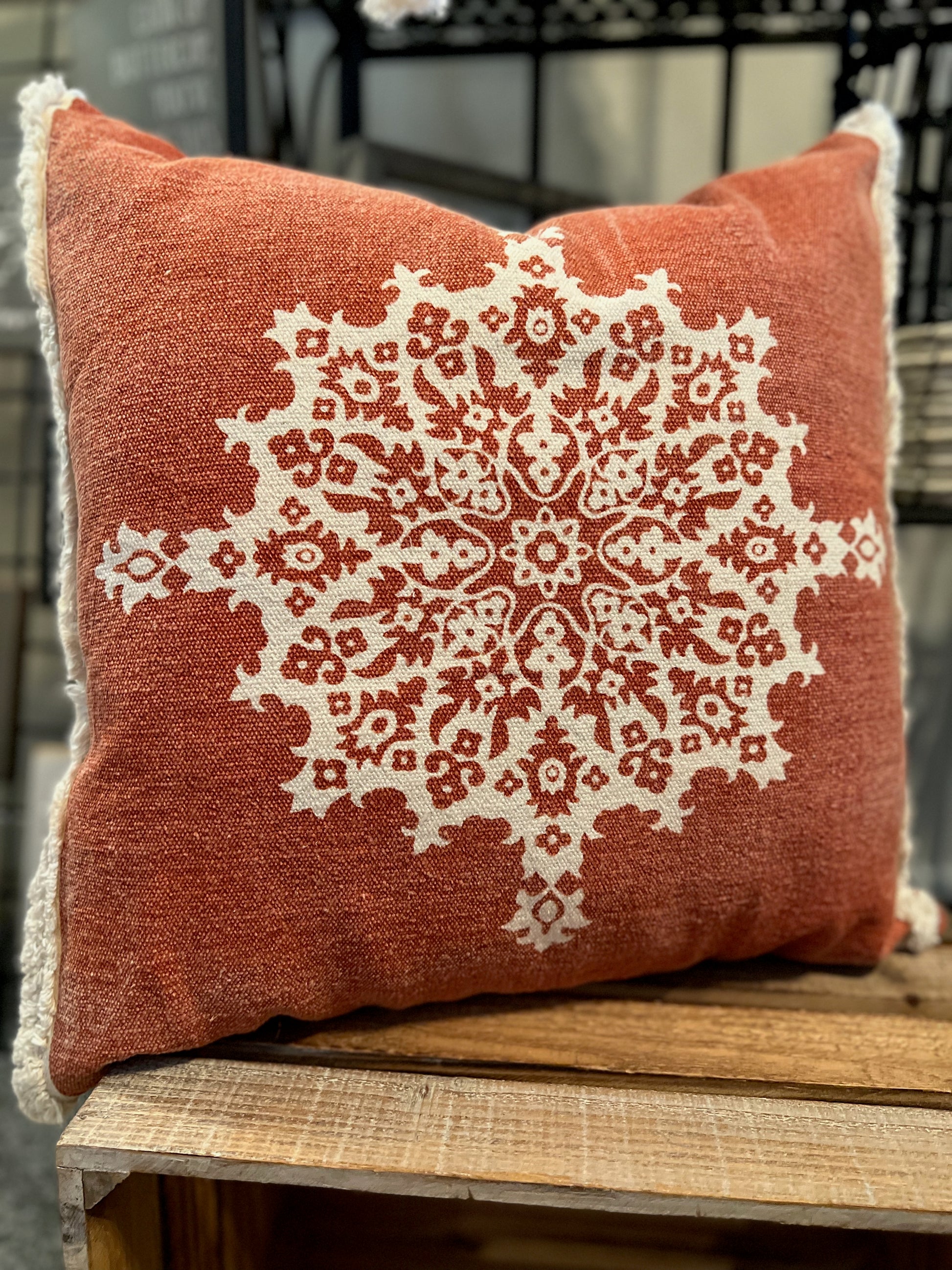 Casual Floral Mandala Medallion Throw Pillow with Tufted Border.