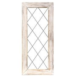 The Rectangular Farmhouse Frame is a 41.5" x 18" wooden wall hanging featuring a distressed white finish and metal lattice screen. It comes ready to hang with a sawtooth hanger on the back. Ideal for rustic and primitive decor, this frame looks great in an entryway, on a covered porch, or leaned against the corner of a wall.
