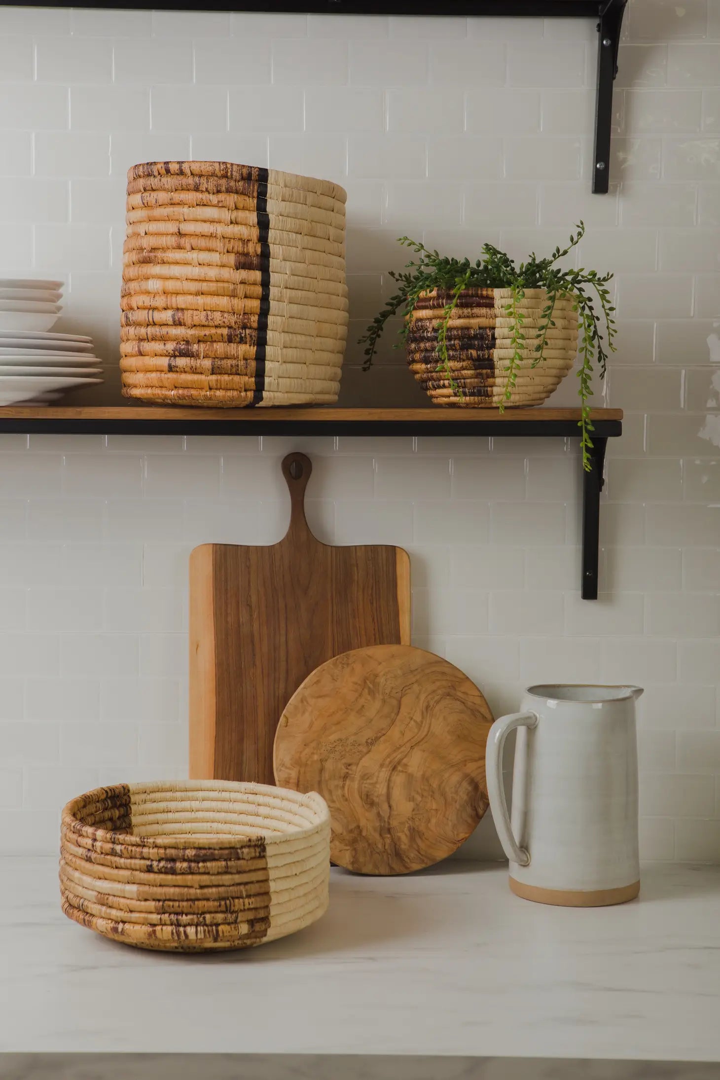 Our catch all woven baskets are perfect for just about anything! Use these stunning home decorations as bathroom storage. Organize your bedroom accessories with these durable, handwoven baskets. These chic home accessories can be beautiful accent decor in your home office or the perfect size for a deep fruit basket on your countertop.