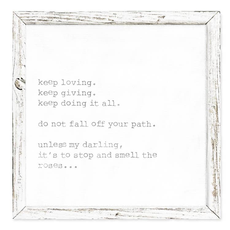 Giclée print on premium artist canvas adhered to a solid back. Frame is made from weathered wood that comes in an all natural rustic antique white finish. Each piece is custom made to order.