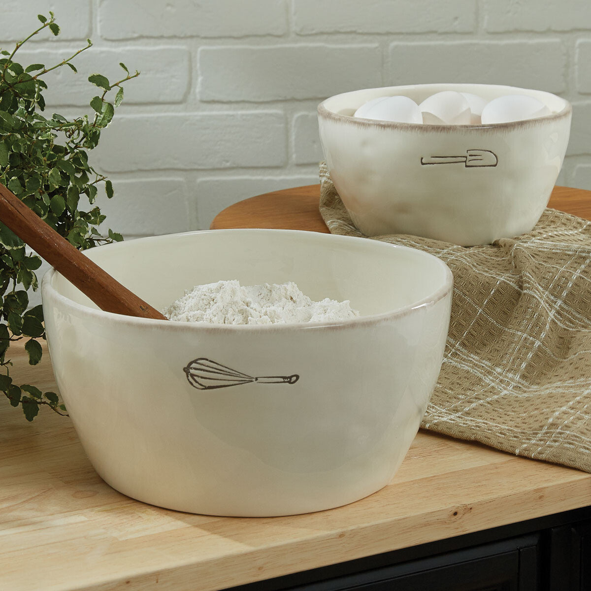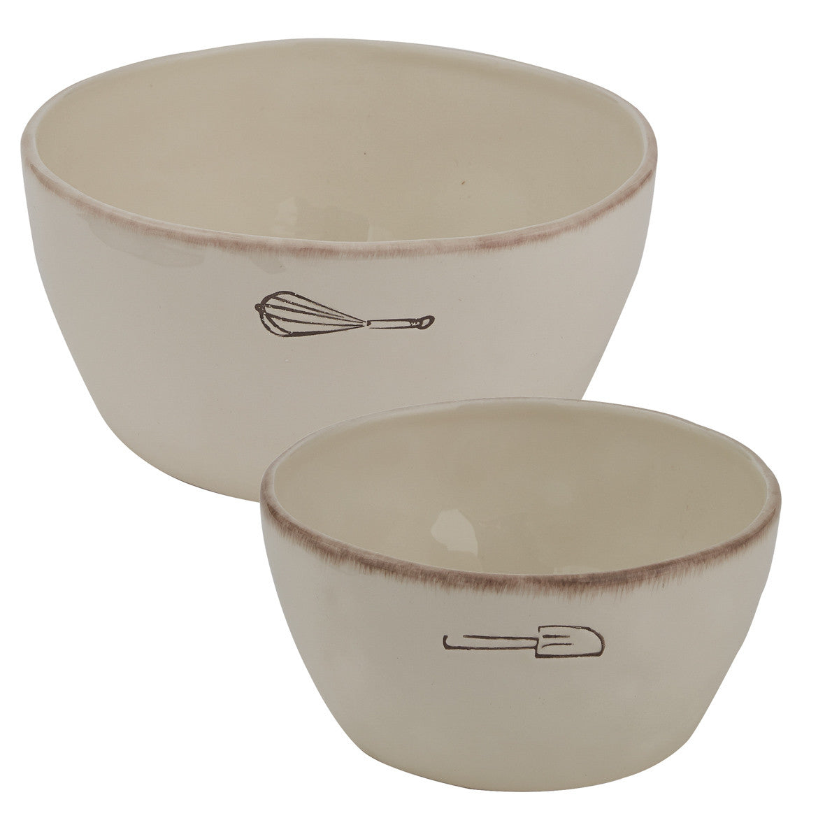 Dimensions: 4"H x 9"DIA (Large), 3.5"H x 7"DIA (Small). Set of two bowls; both microwave- and dishwasher-safe.