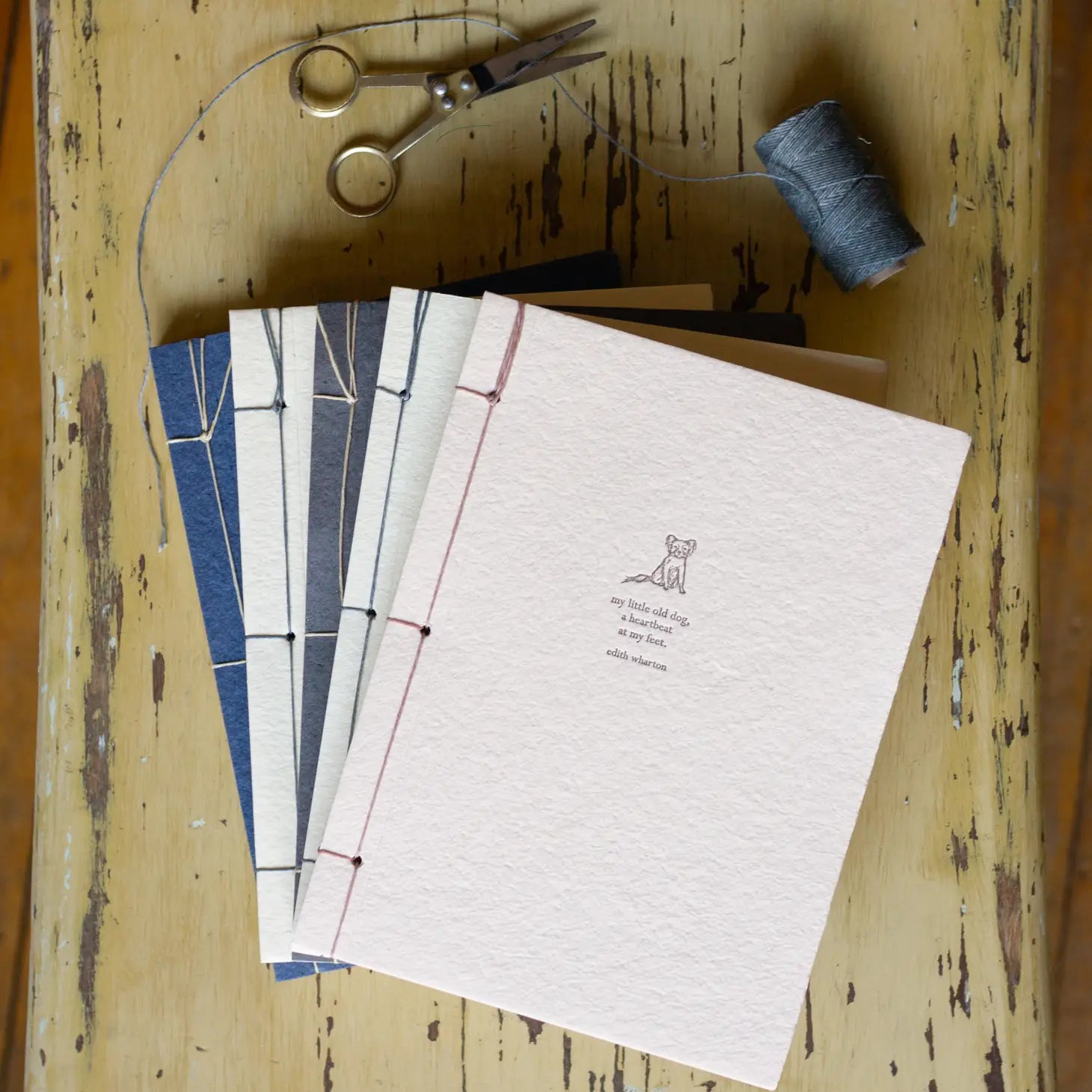 our inspiration journal collection features a minimal design with striking quotes from prominent individuals on a handmade paper cover. carefully hand-bound in portland paper studio.