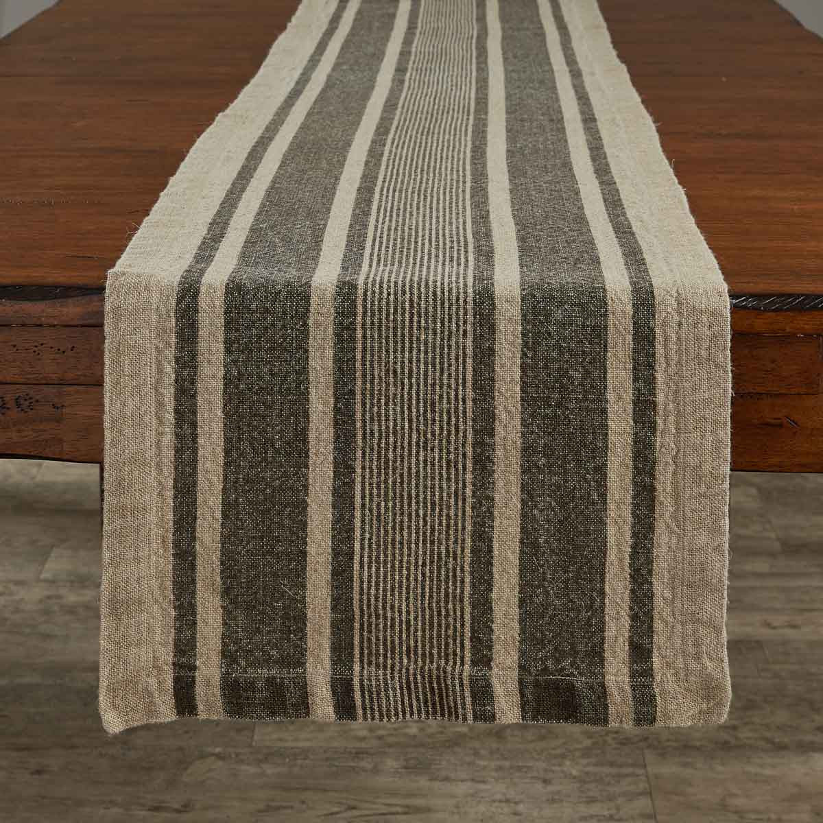WASHED LINEN STRIPE TABLE RUNNER - BROWN - 60"L