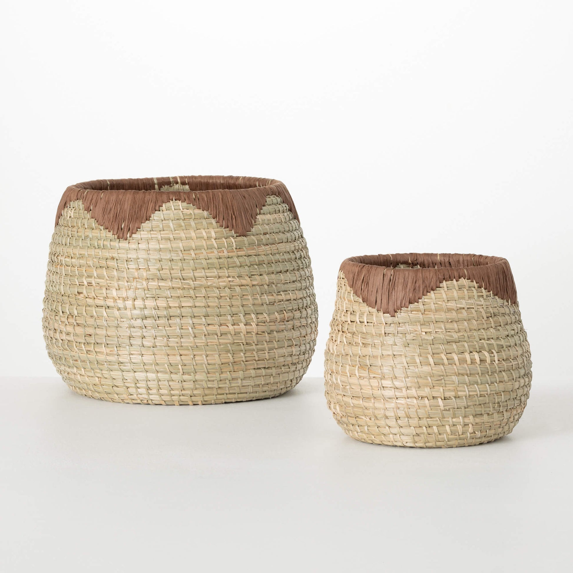 Elevate the Bohemian charm of your living space with this set of two expertly crafted handwoven sea grass baskets. The varying sizes, small and medium, give you the perfect storage options for plants, magazines, snacks and toiletries. The natural fibers and earthy brown accents exude a rustic, organic feel that complements any decor seamlessly. Not only do they add a touch of chicness, but these baskets are also highly durable and versatile, making it easy to use them anywhere in your home. From decluttering to adding texture, these handwoven sea grass baskets are a necessary addition to any household.